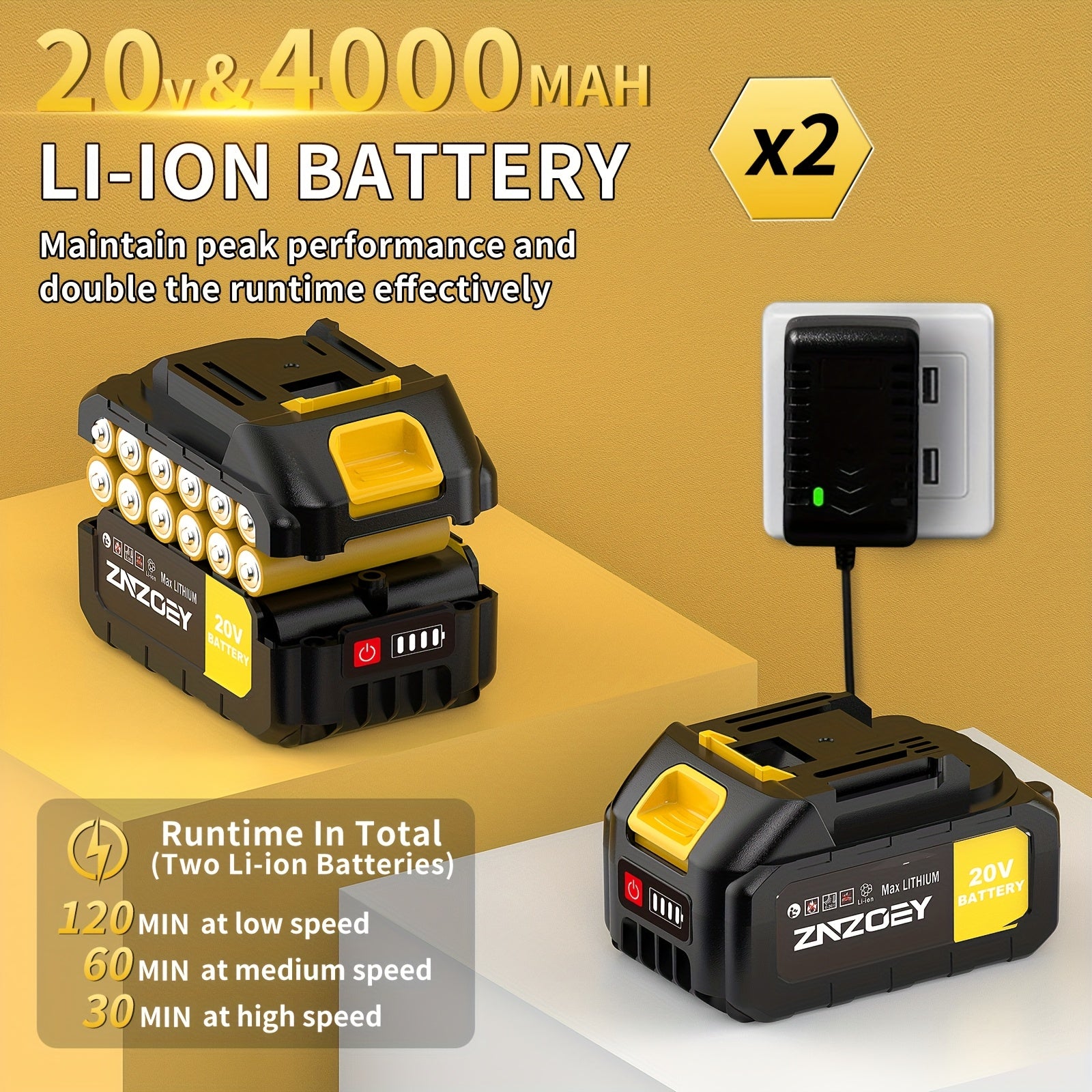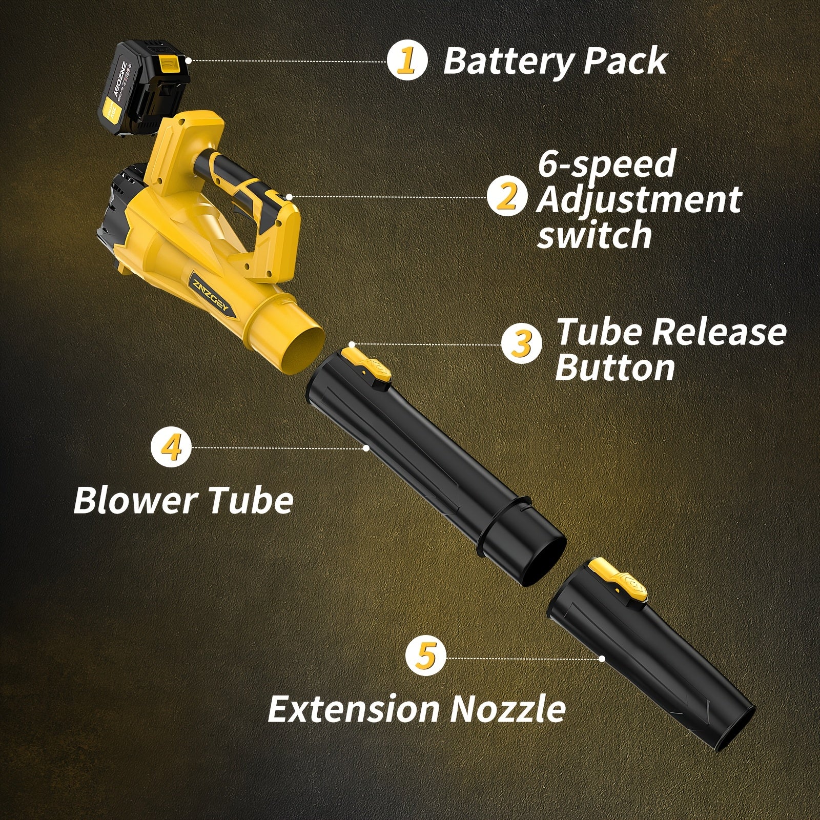 High Power Cordless Leaf Blower with 4.0Ah Batteries, 6 Speed Levels & Extension Nozzle